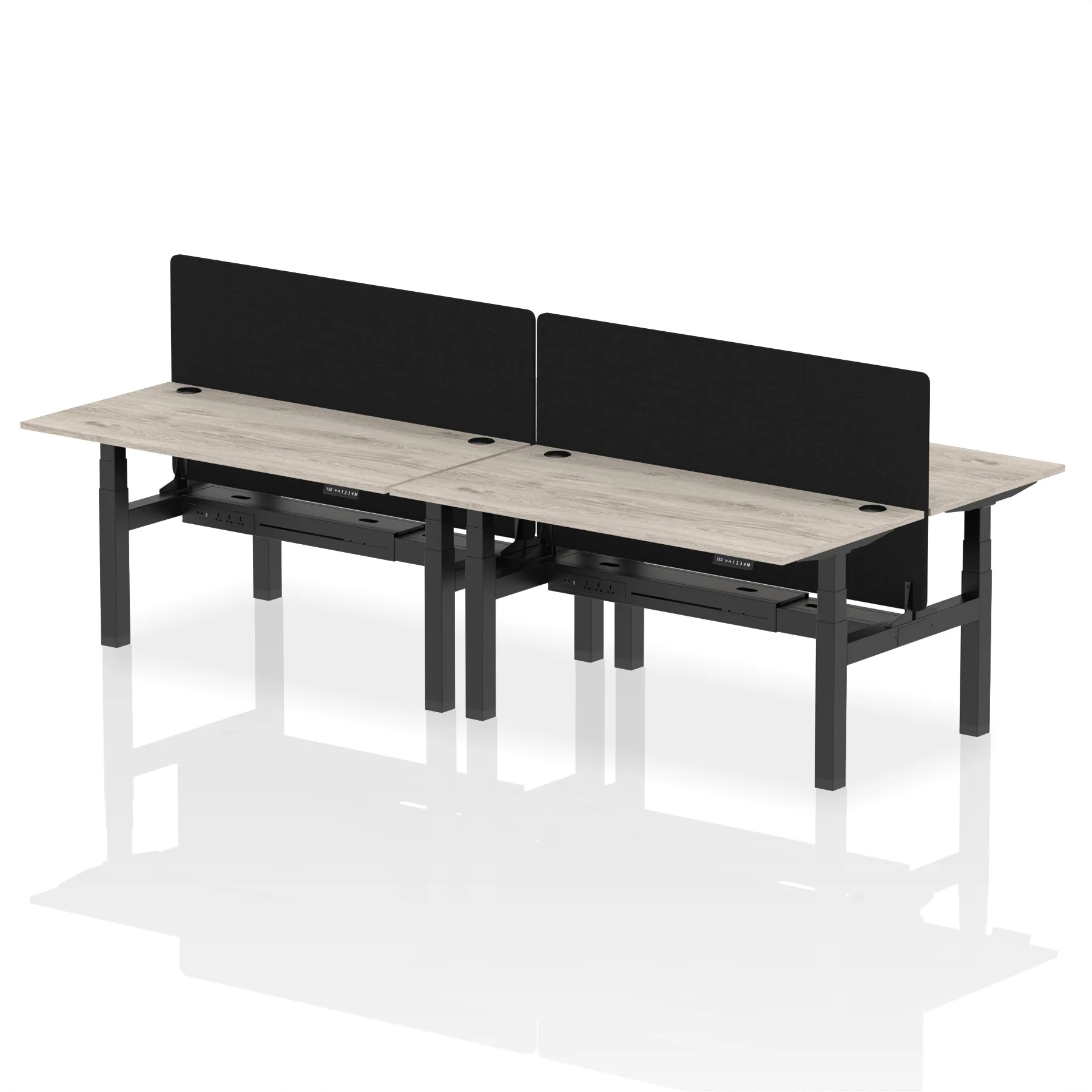 Air Back-to-Back Height Adjustable Bench Desk – 4 Person with Black Straight Screen