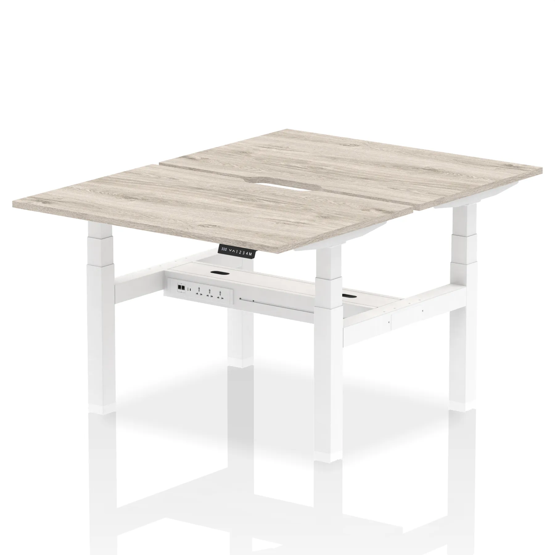 Elevate your team’s workspace with the Air Back-to-Back Height Adjustable Desk for two. This workstation features stylish scalloped edging and is equipped with two Ethernet ports, a USB port, a USB-C port, and three UK plugs per desk, ensuring optimal connectivity. The adjustable height promotes ergonomic working positions. Designed for collaboration and efficiency, it’s the perfect blend of aesthetics and functionality for the modern office.