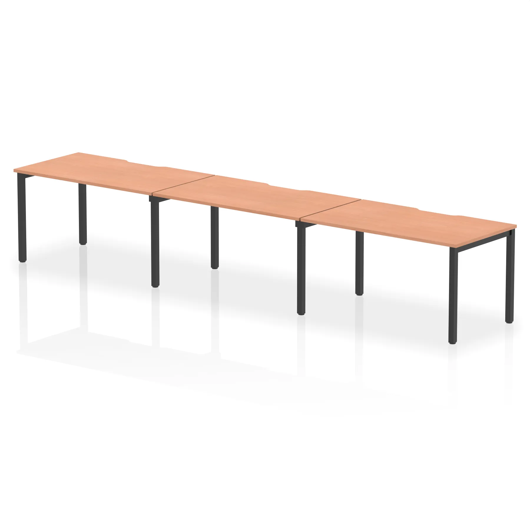 Conjoinable frame system allows for easy adaptability • Stylish powder coated goal post leg design • Lockable sliding top mechanism for easy access • Scalloped back edge for easy cable management • 18mm thick tops with 2mm protective edging • Adjustable Feet • Choice of 6 wood finishes and 3 leg colours • Weight Capacity: 135Kg