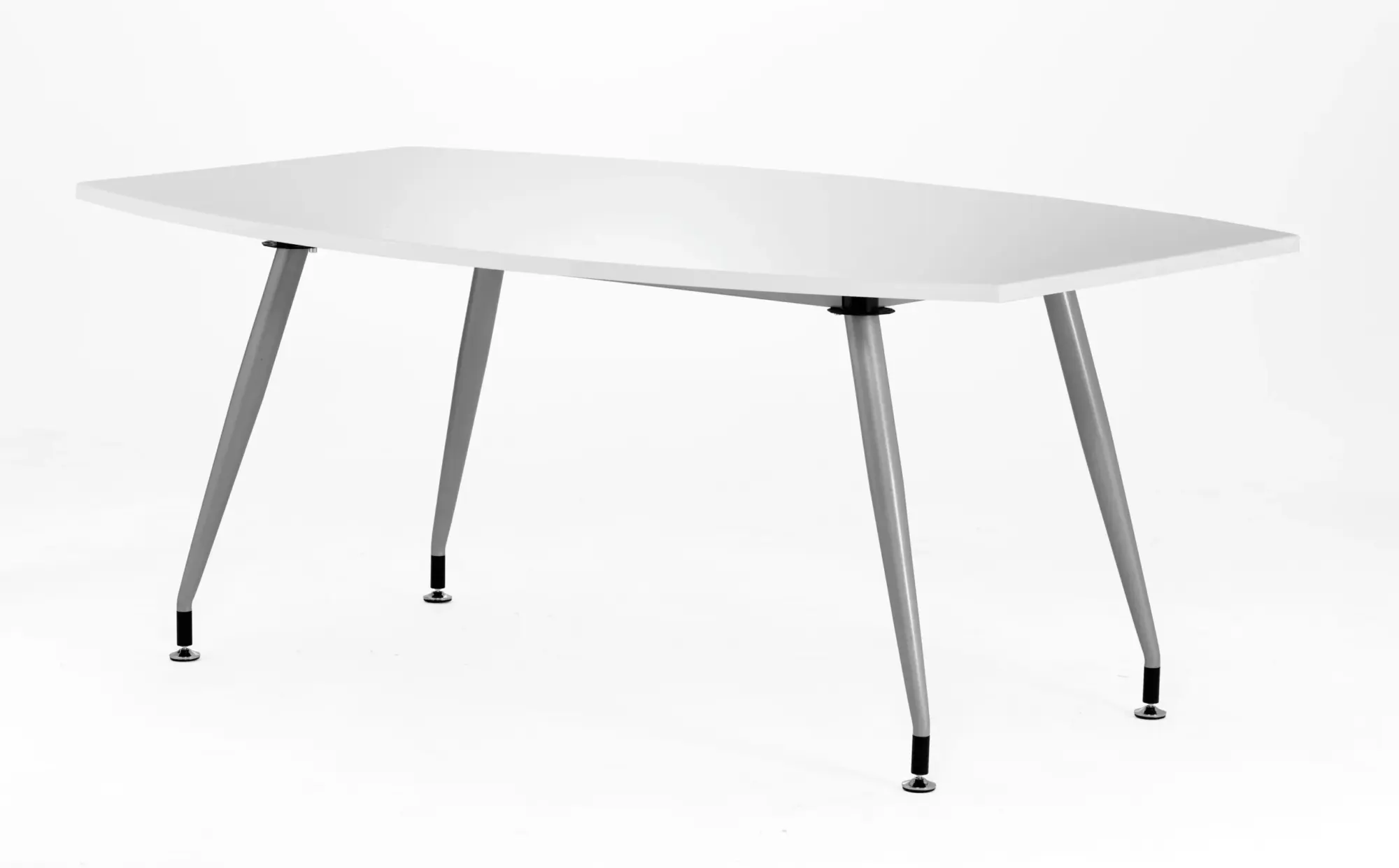 Elegant high gloss polished tops | Large seating area | Stylish tip to toe leg detail | Silver legs |Boat shaped for better team working | Height adjustments to feet | High sheen black finish