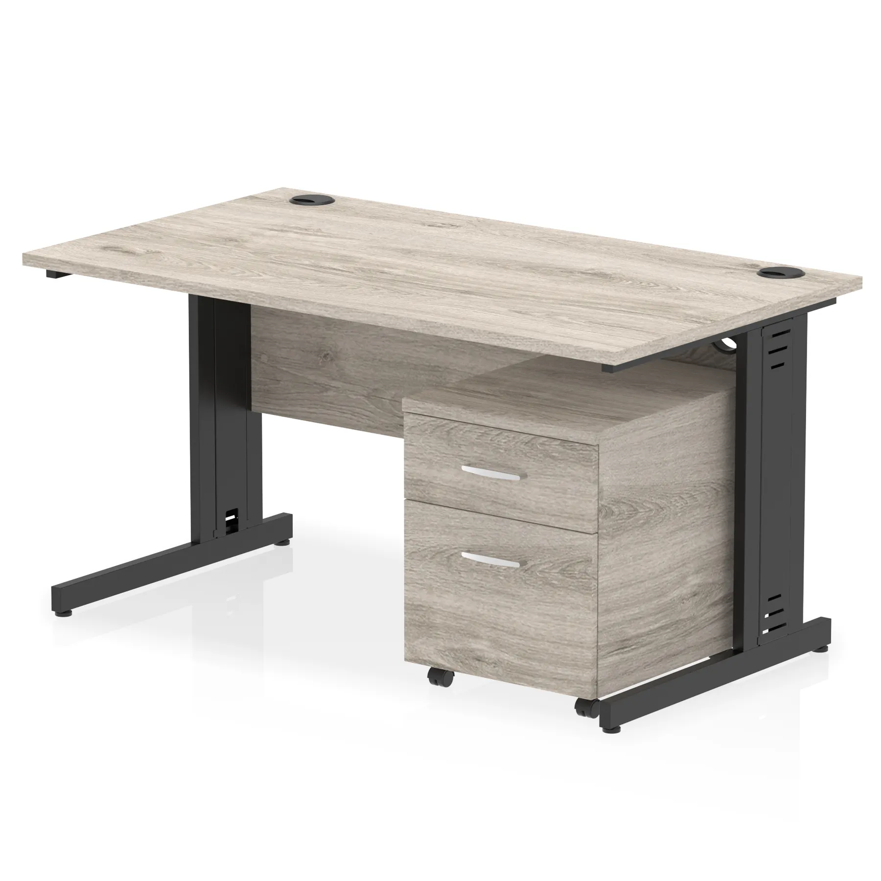Impulse contract workstation | 25mm tops | Desk and pedestal combined | Heat resistant beech melamine finish | 18mm modesty panel | 2mm protective abs edging | Silver coated double strut legs with cable management | Multiple cable ports | Height adjustable feet | Steel to steel fixings | Modesty panel slots wire slots | Deep set modesty panel (5″) allows for compatibility of most screen clamp fittings