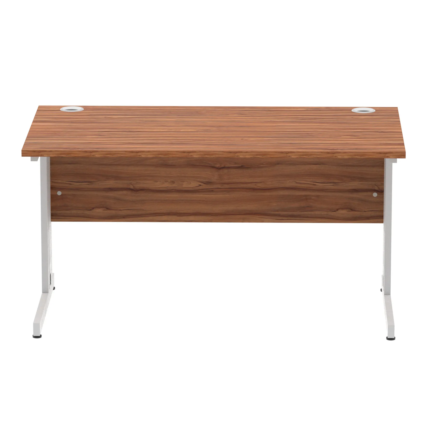 Impulse contract desk | 25mm tops | wire management panel | Heat resistant melamine finish | 18mm modesty panel | 2mm protective abs edging | Silver coated double strut legs | 2 cable ports | Height adjustable feet | Steel to steel fixings | 2 modesty panel slots | Deep set modesty panel (5″) allows for compatibility of most screen clamp fittings | Weight Capacity 135Kg