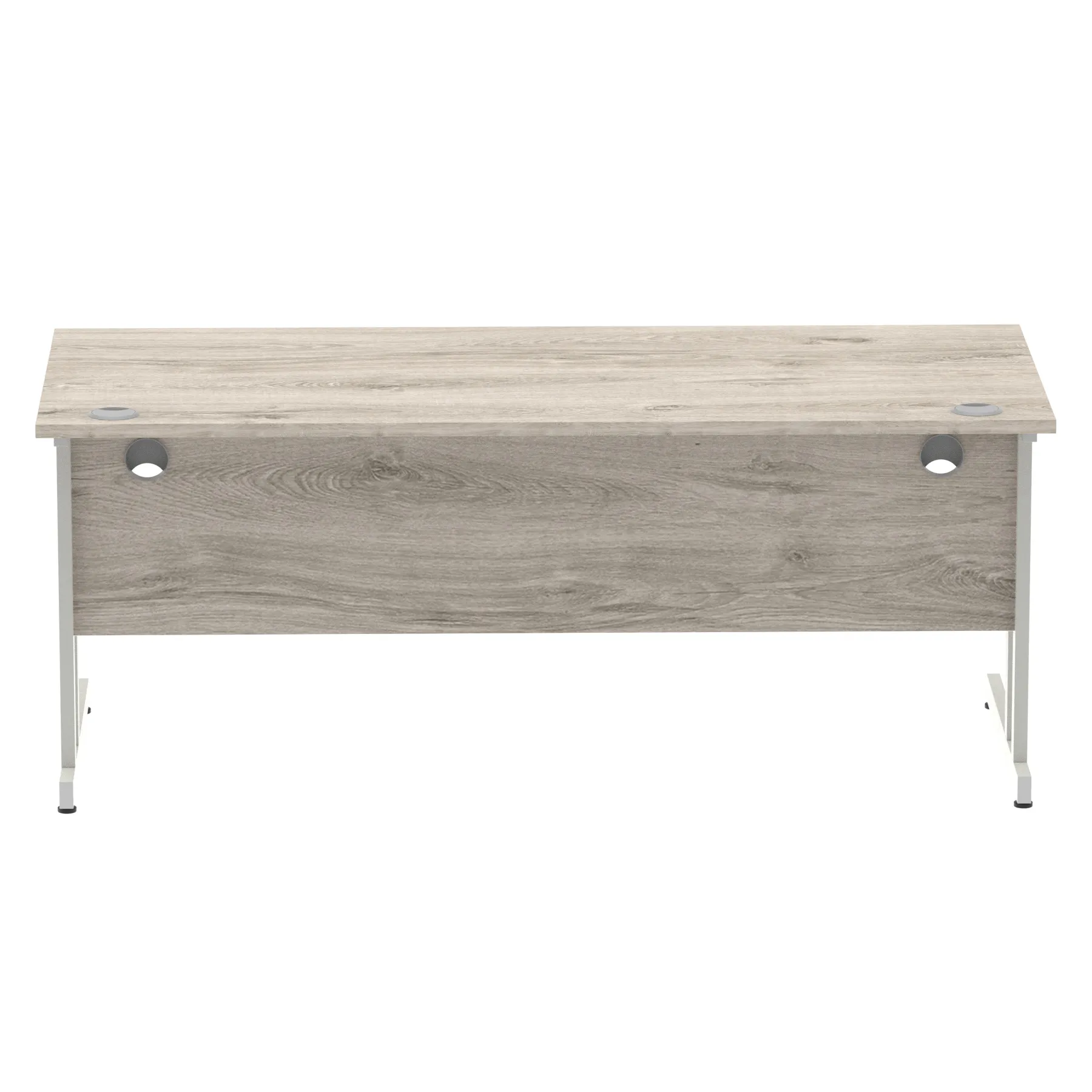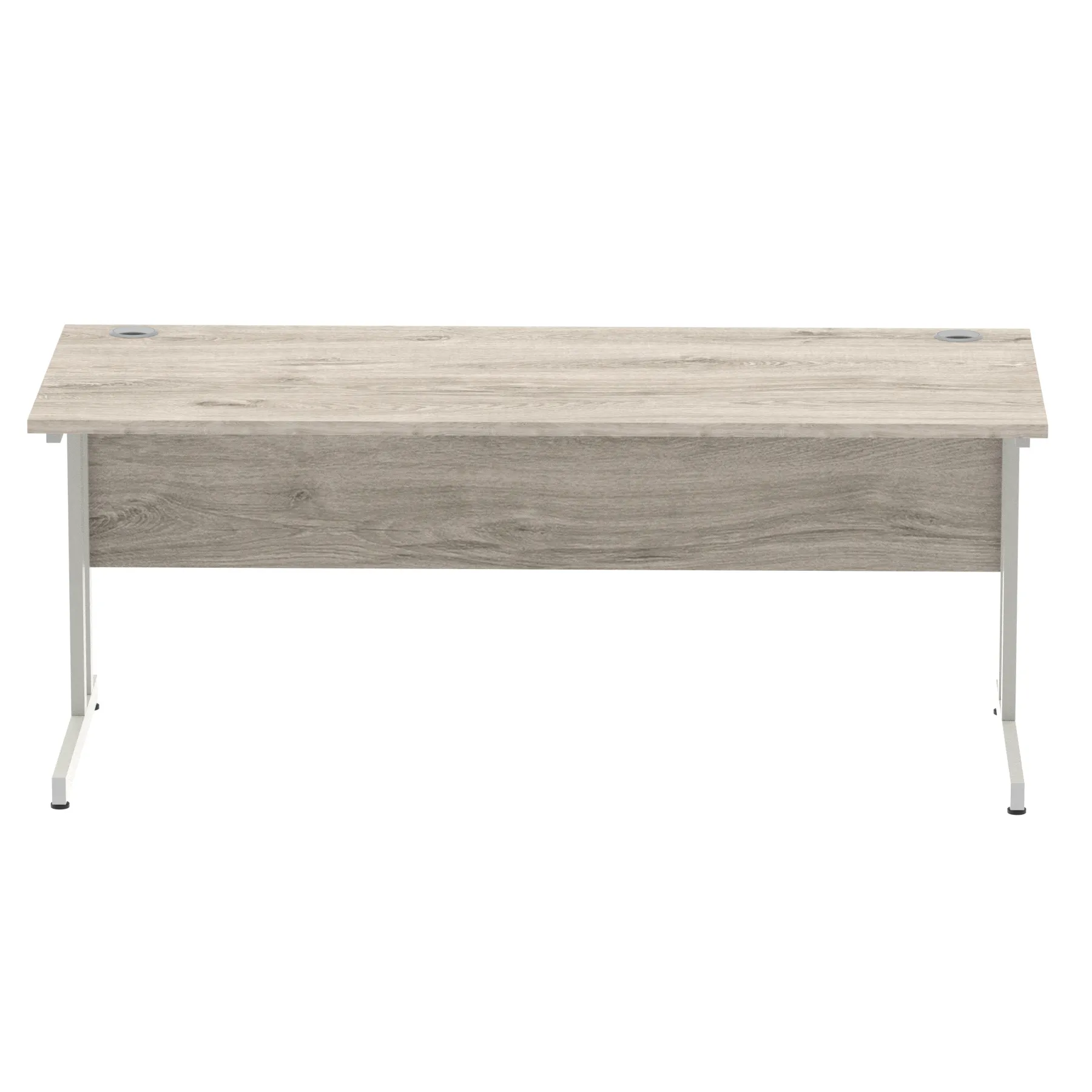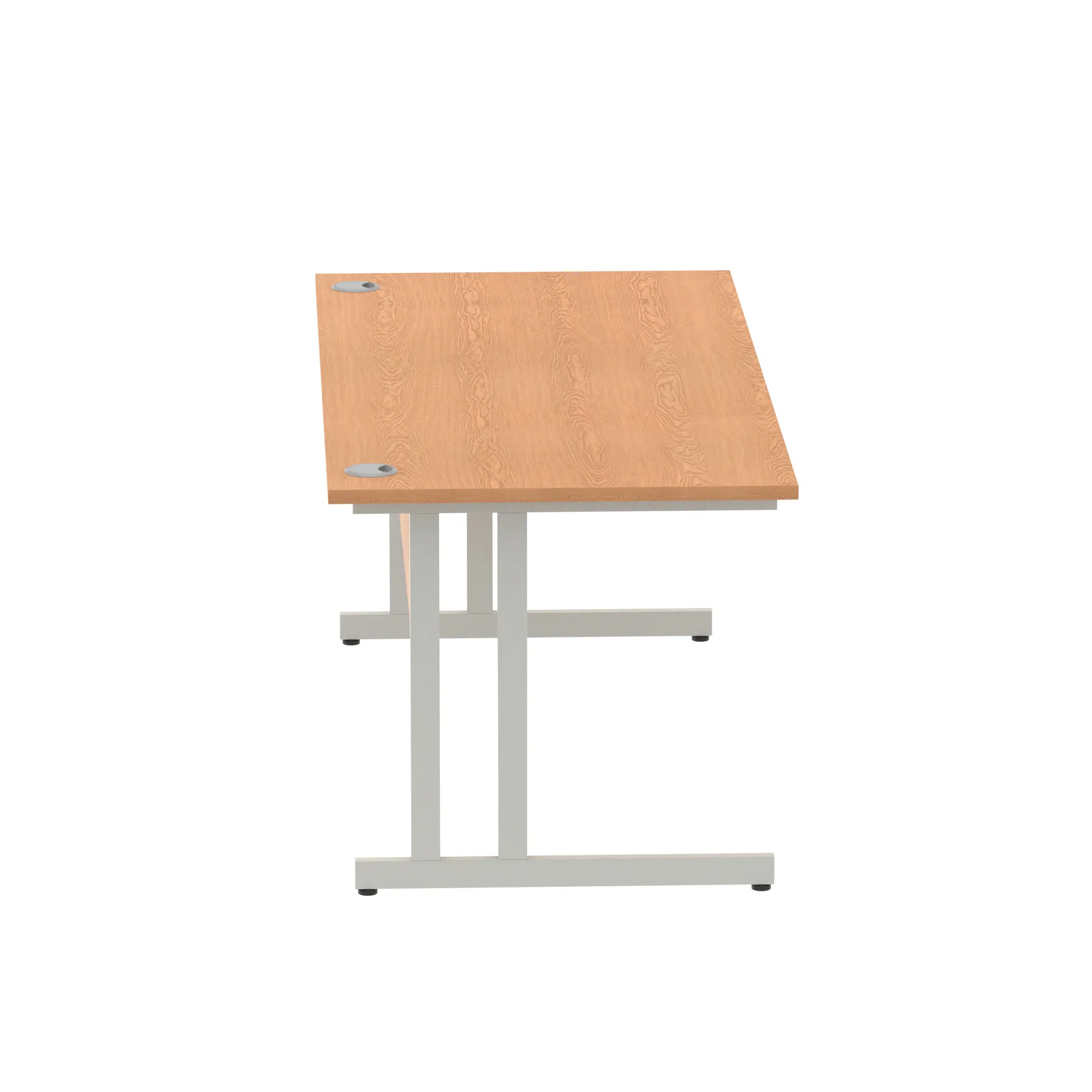 Impulse contract desk | 25mm tops | Heat resistant melamine finish | 18mm modesty panels | 2mm protective abs edging | Double strut legs | 2 cable ports | Height adjustable feet | Steel to steel fixings | 2 modesty panels Ports| Deep set modesty panel (5″) allows for compatibility of most screen clamp fittings | Weight Capacity 135Kg