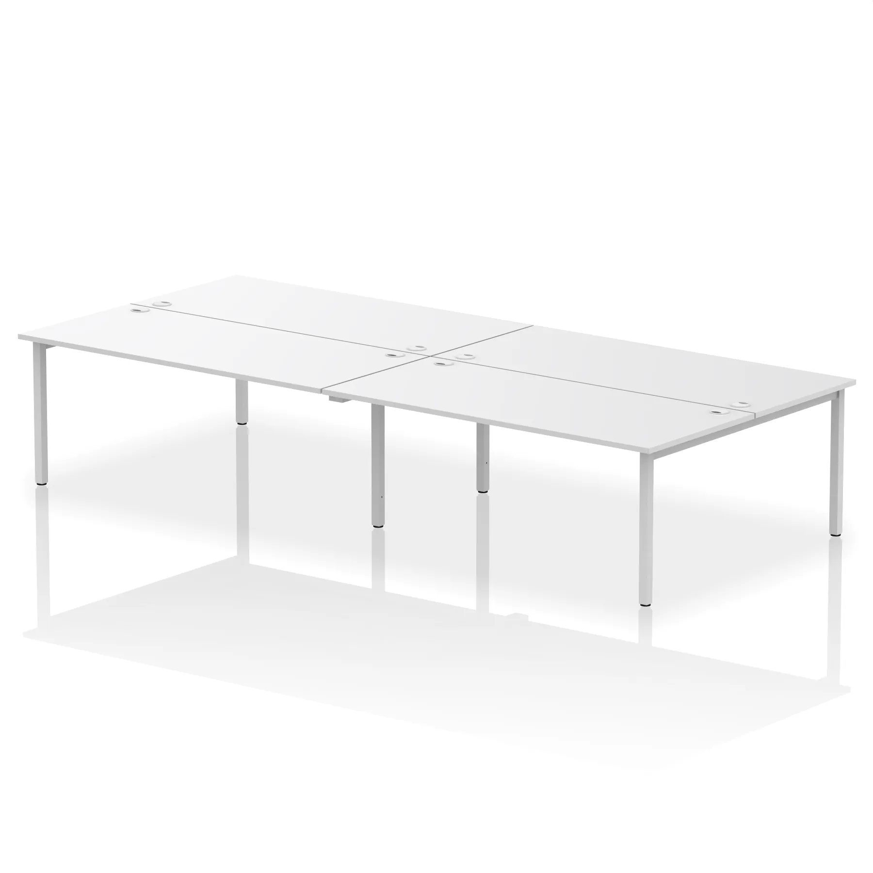 • Conjoinable frame system allows for easy adaptability • Stylish powder coated goal post leg design • Double cable ports for easy cable management • 25mm thick tops with 2mm protective edging • Adjustable Feet • Choice of 7 wood finishes and 3 leg colours • Weight Capacity: 100kg per user