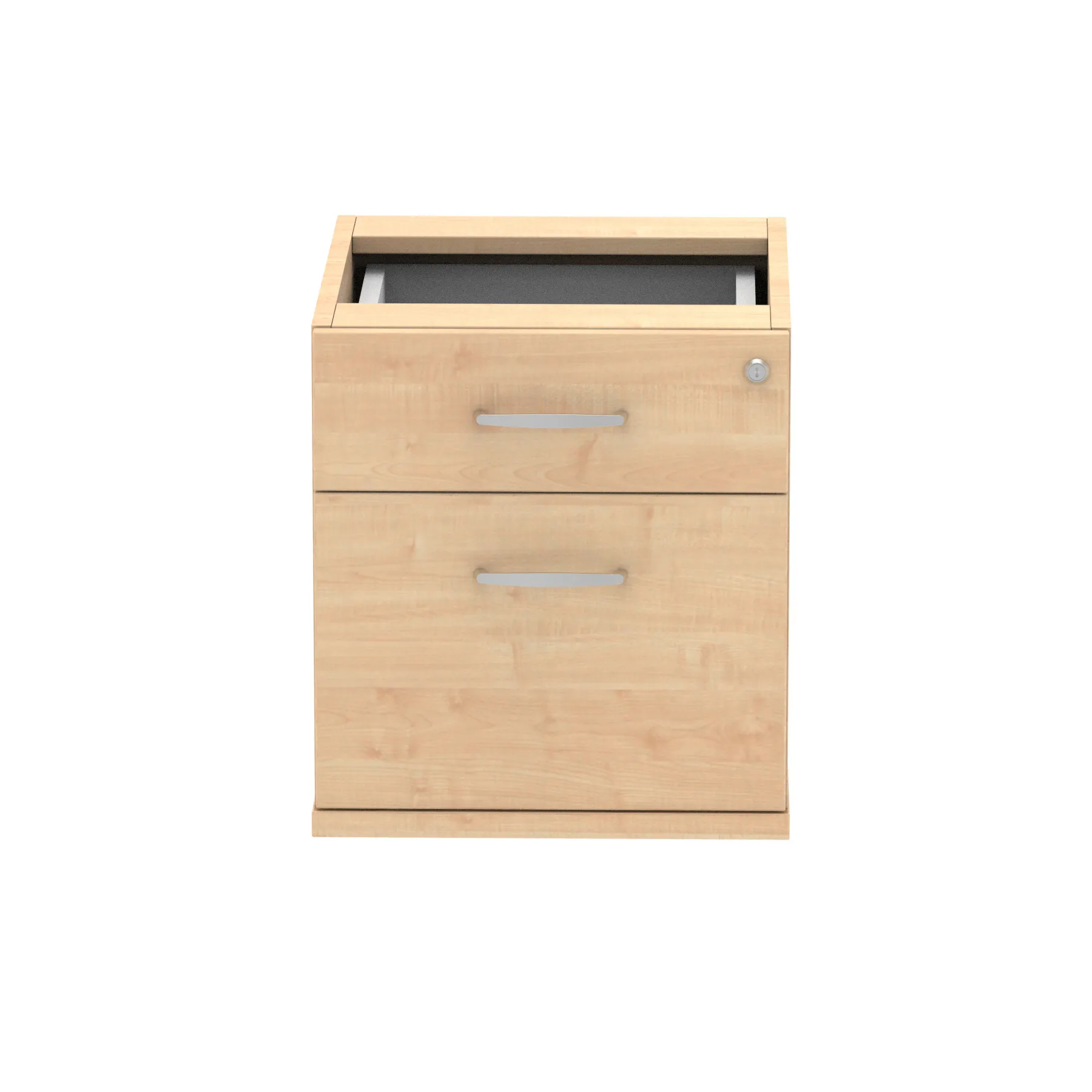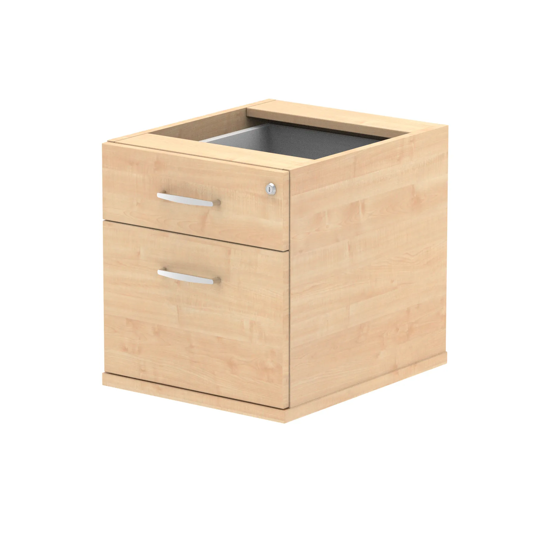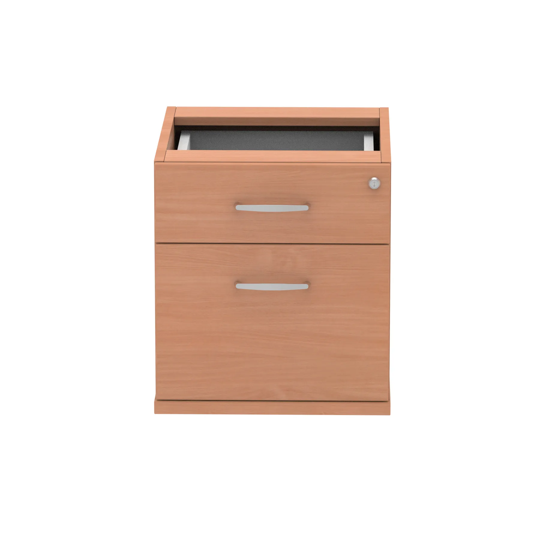 Impulse fixed pedestal | 25mm top | Full 18mm back board | 2mm abs protective edges | Steel handles | Solid box drawer construction | Fits A4 or foolscap filing (Filing rails only available on the 2 drawer variant) | Steel to steel fixings | Lockable drawers | Heat resistant Beech melamine finish