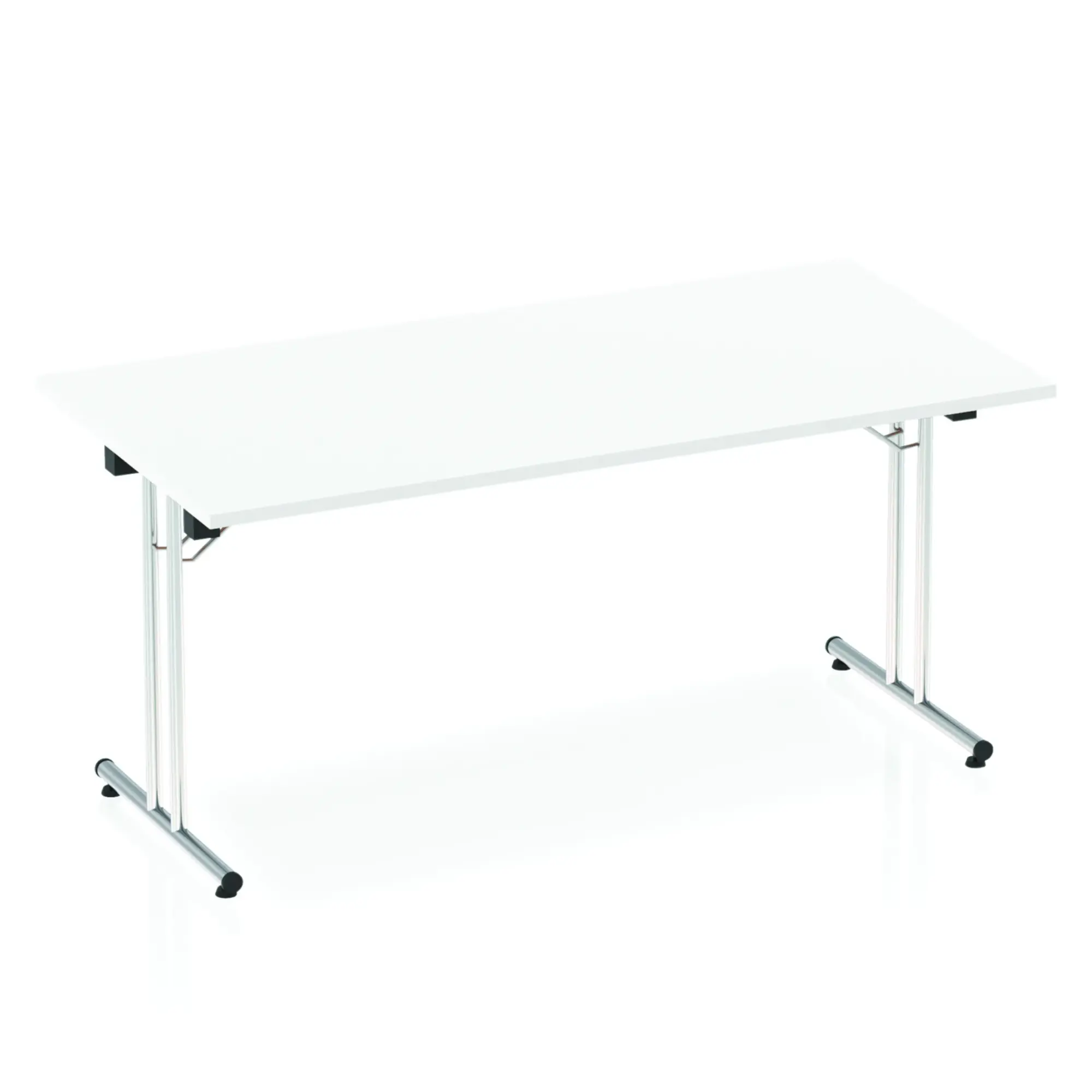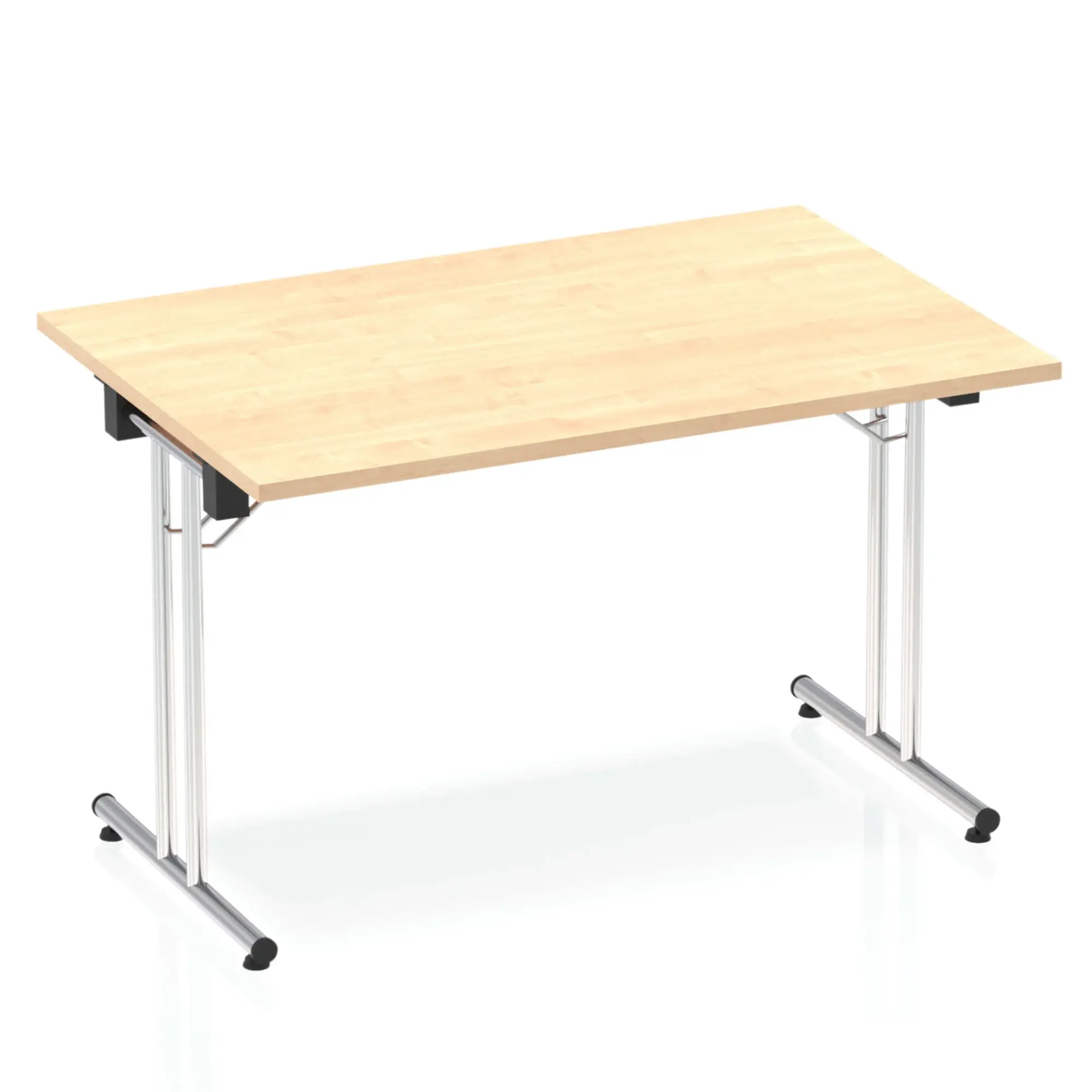 Impulse freestanding meeting table | Classic rectangular shape |Table folds easily for space efficient storage | Provides excellent team working environment | 25mm thick top | Attractive silver coated leg | 2mm abs protective edging | Heat resistant beech melamine finish | Steel to steel fittings | Weight Capacity 135Kg
