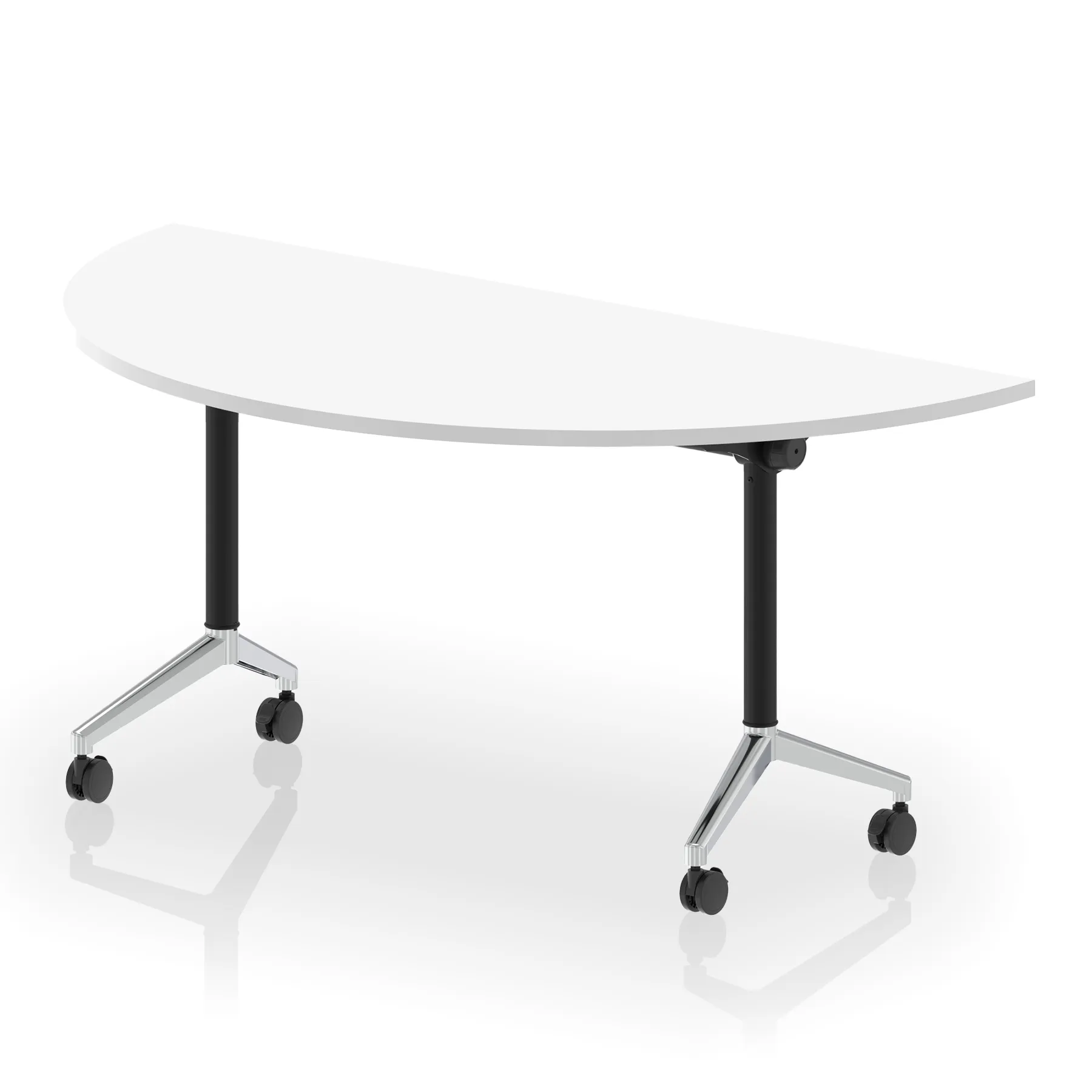 • Semi-circular table flips easily for space efficient storage