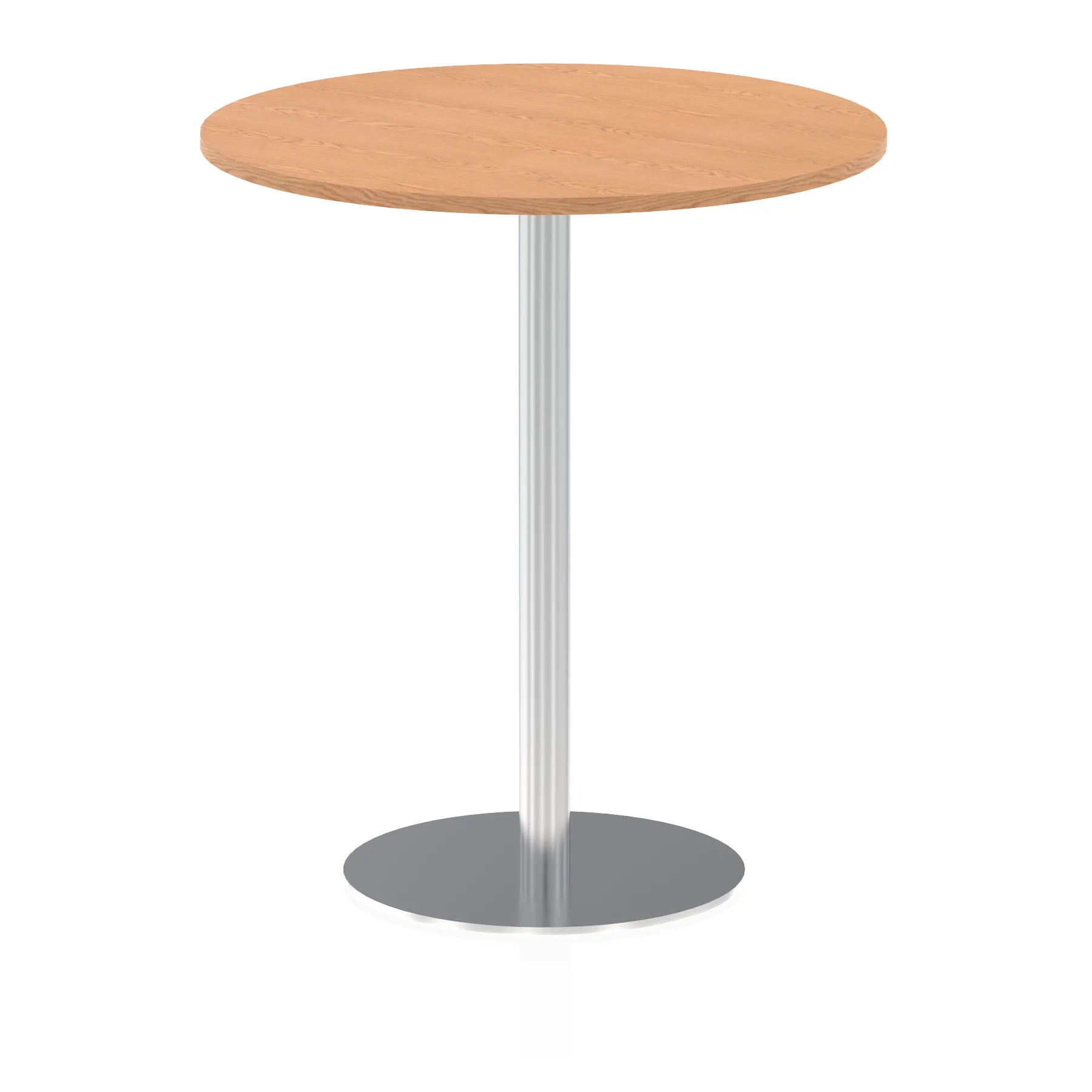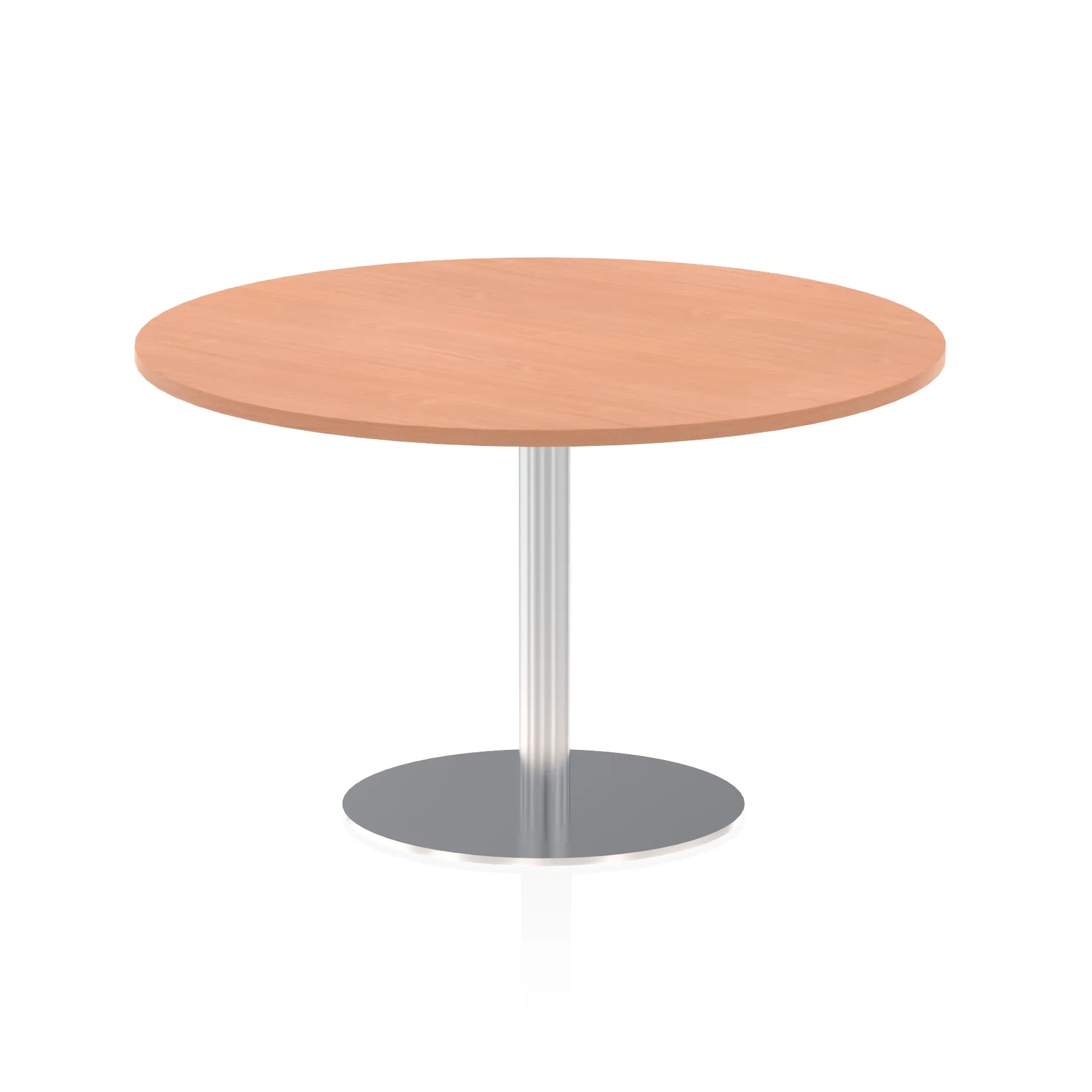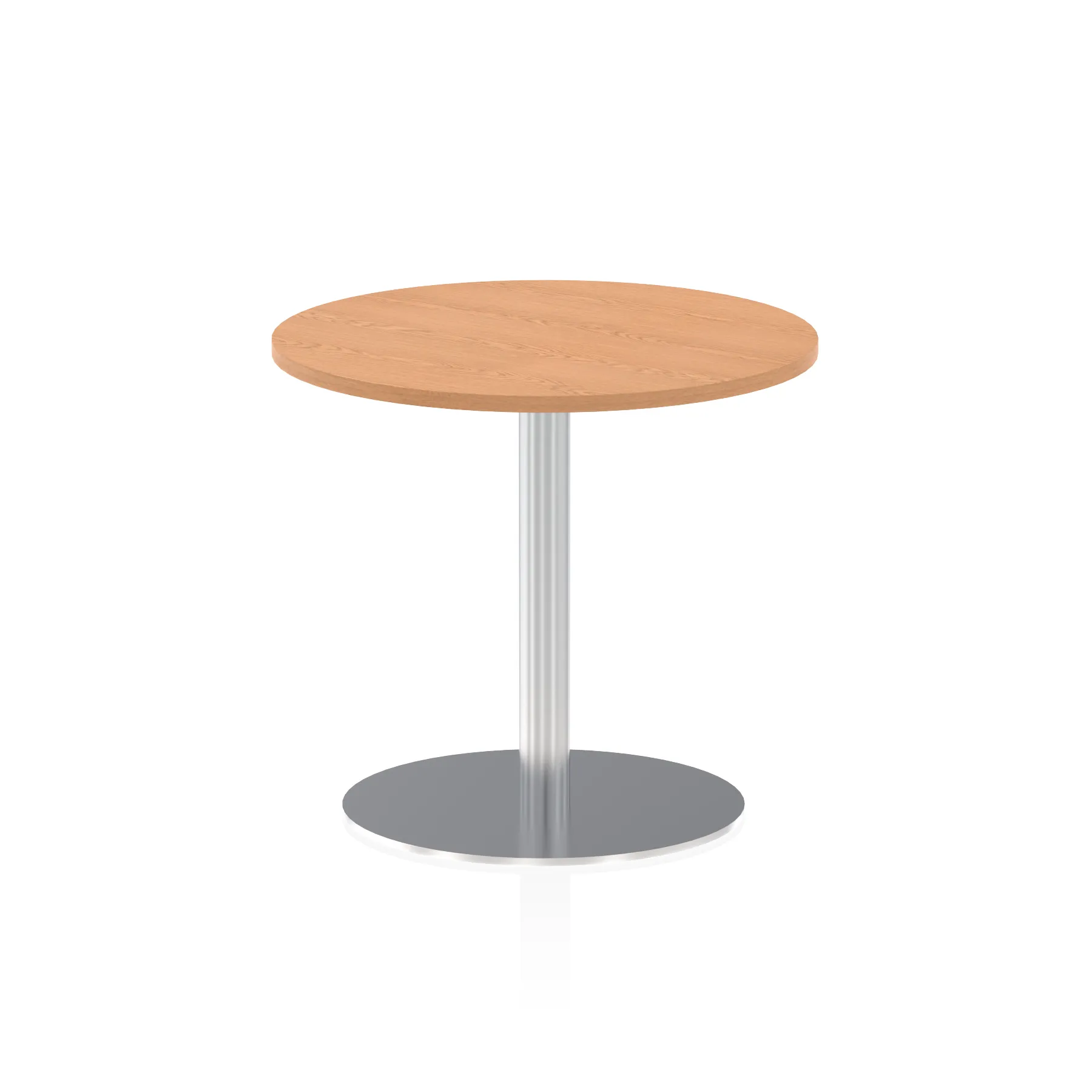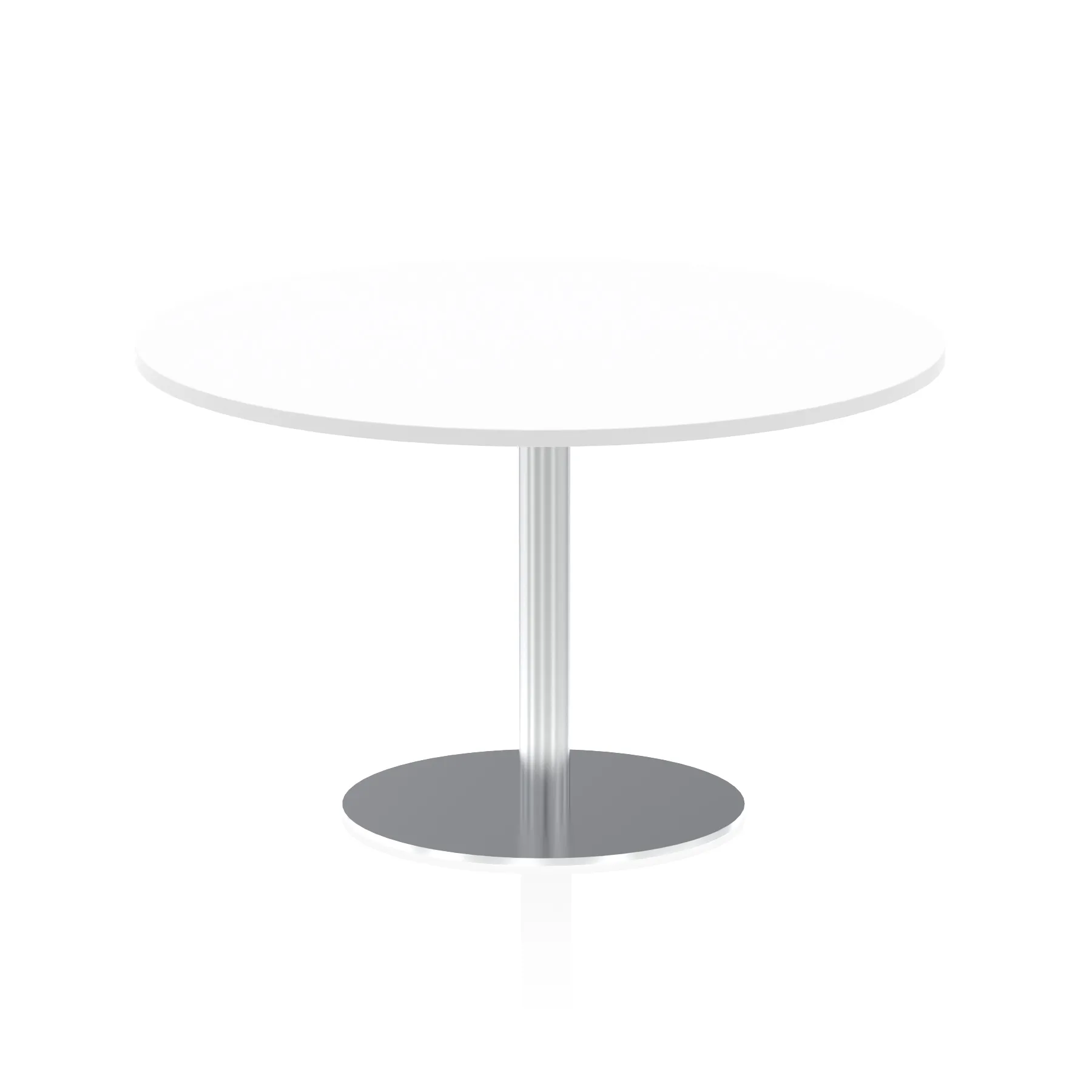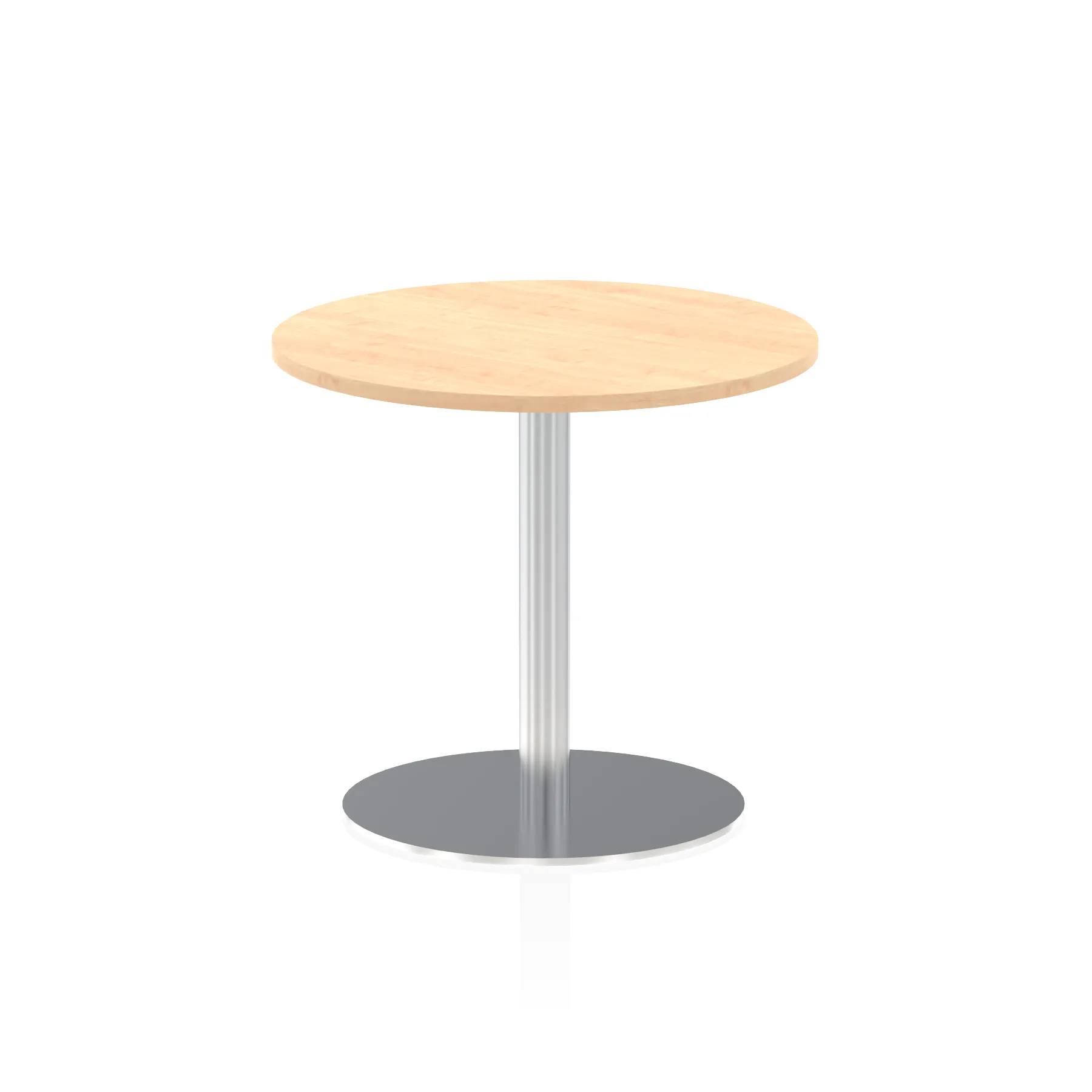 25mm thick desk top profile | Brushed stainless steel effect circular base (580mm diameter) | Brushed stainless steel pillars (76mm diameter) | Weighted base provides stability | Two part bolted frame system