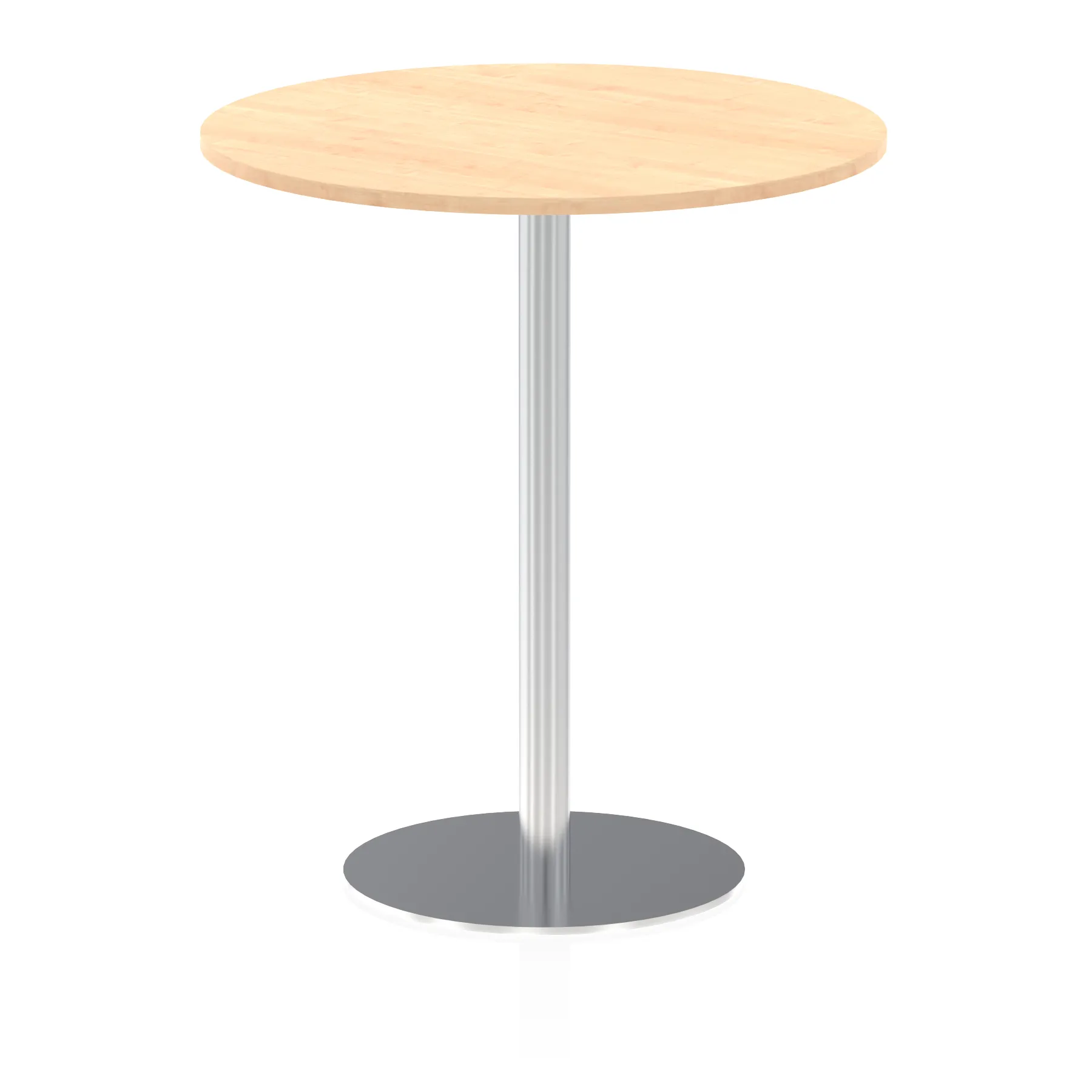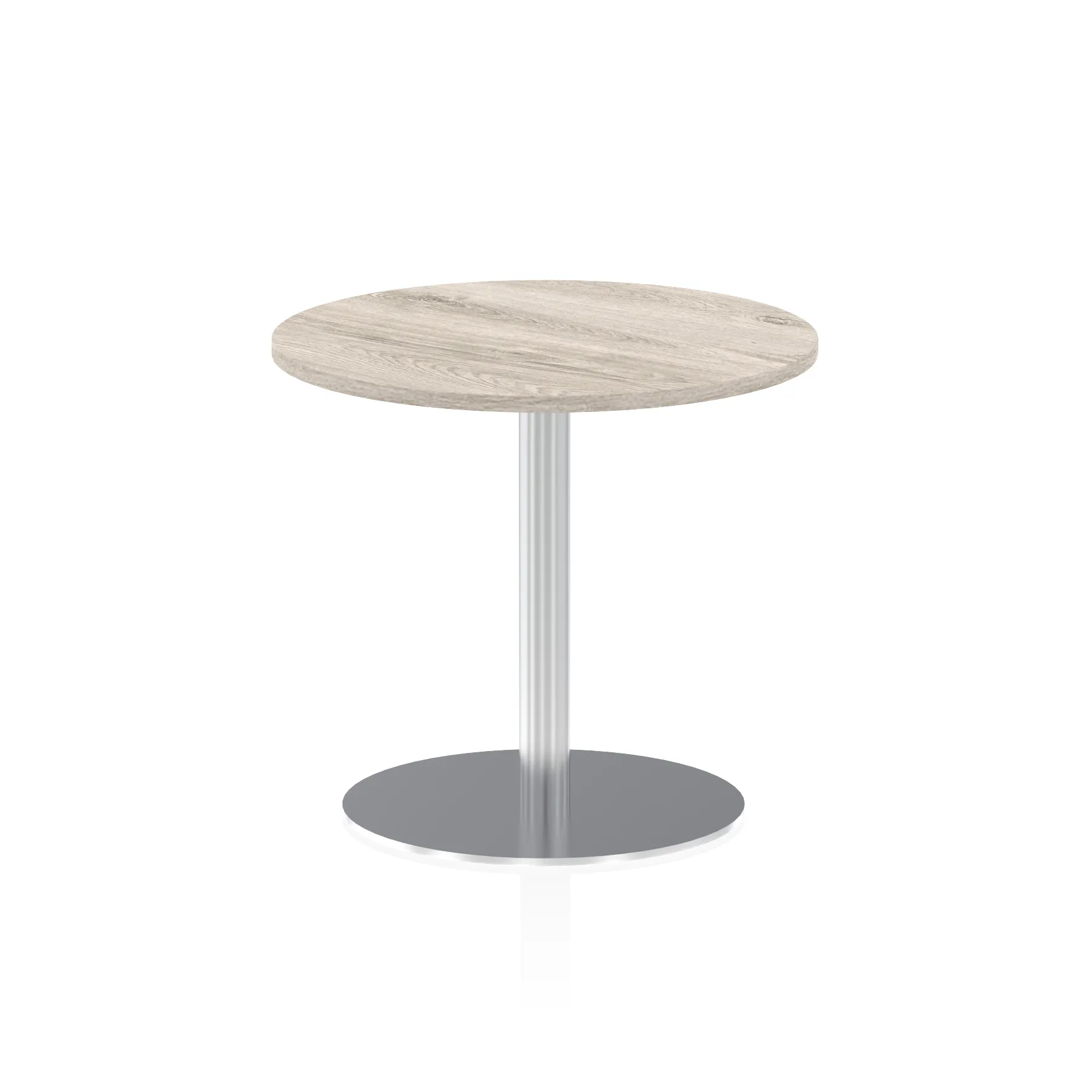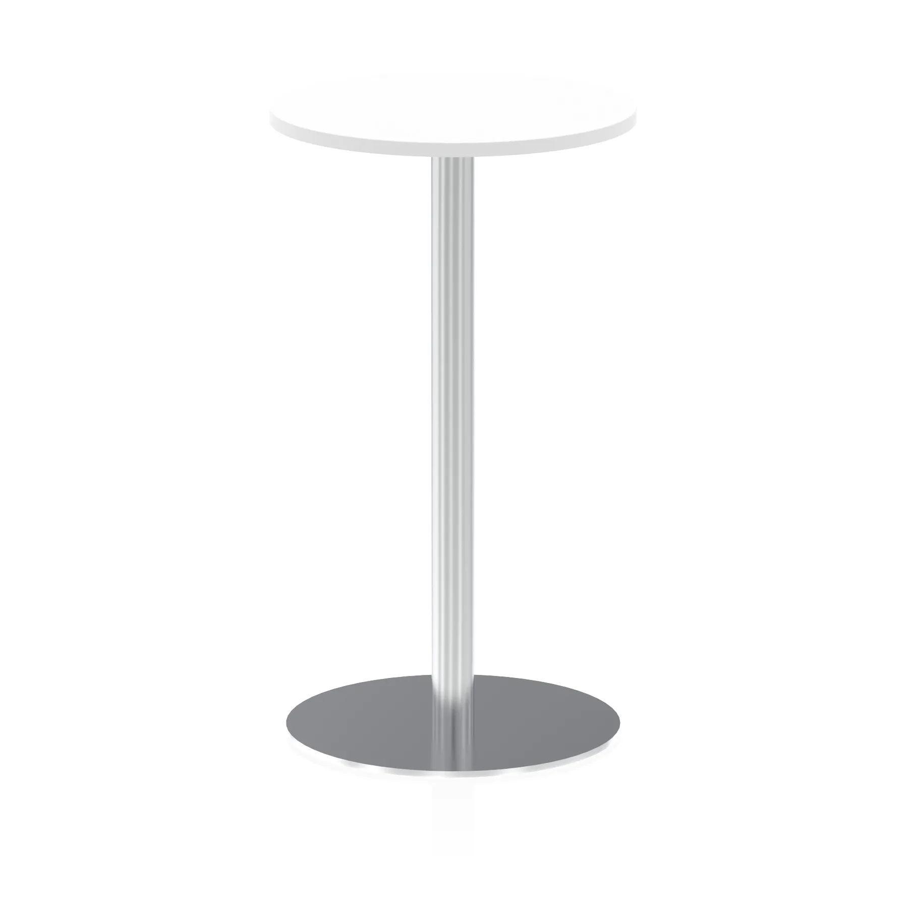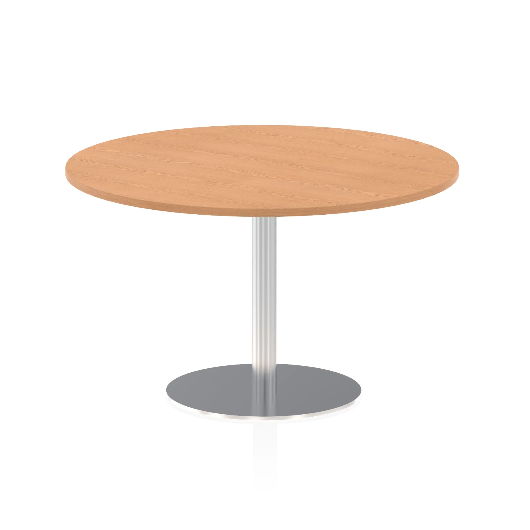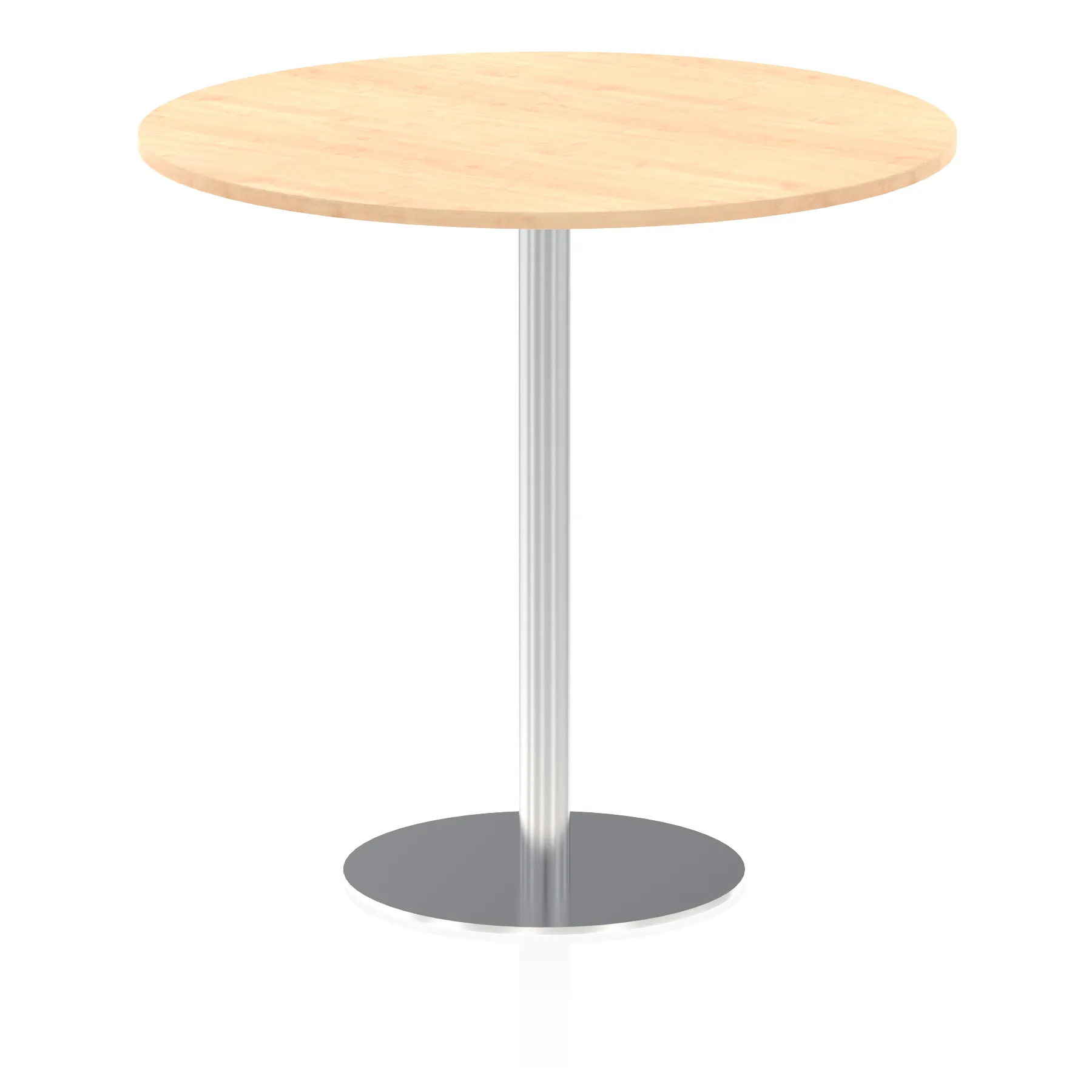 25mm thick desk top profile | Brushed stainless steel effect circular base (580mm diameter) | Brushed stainless steel pillars (76mm diameter) | Weighted base provides stability | Two part bolted frame system
