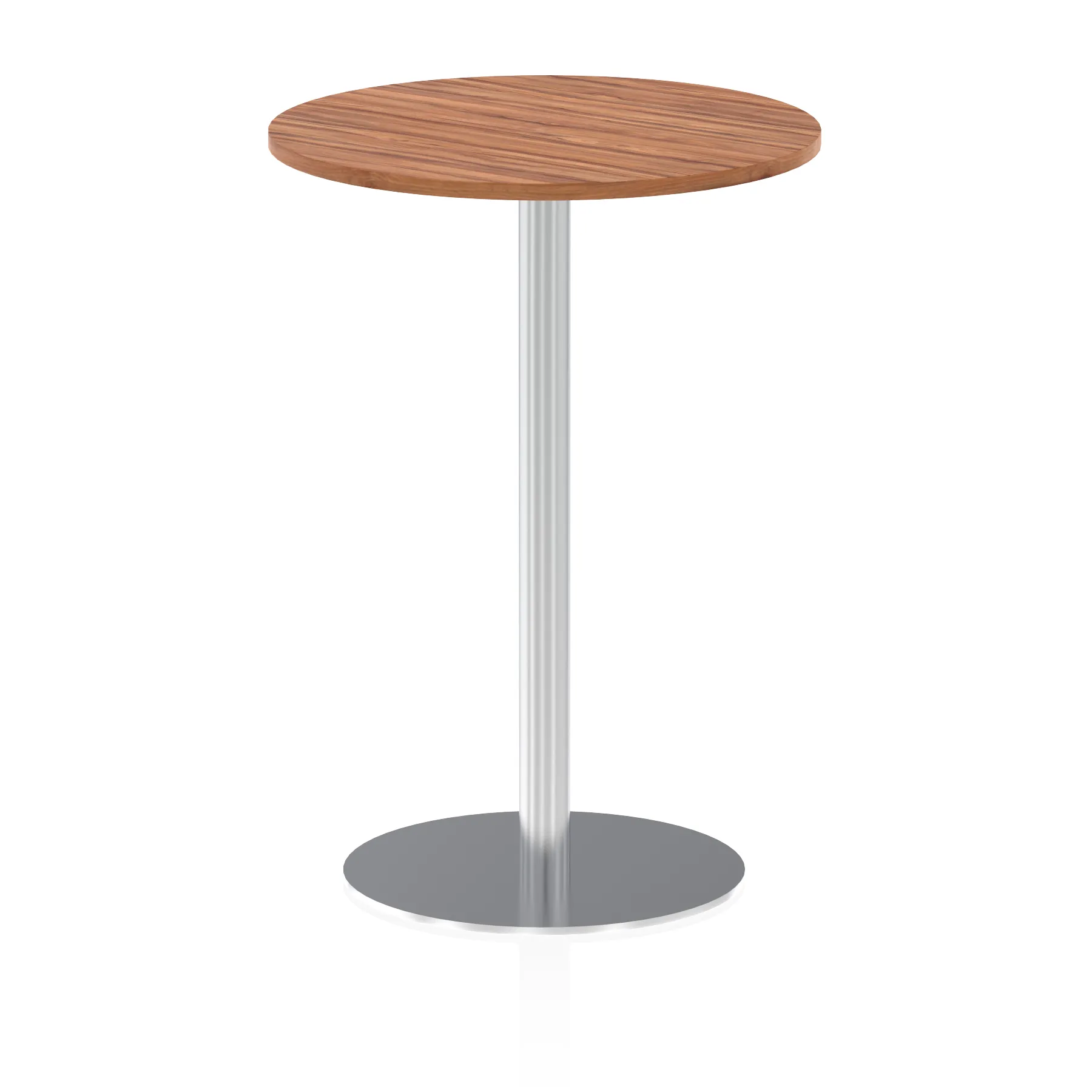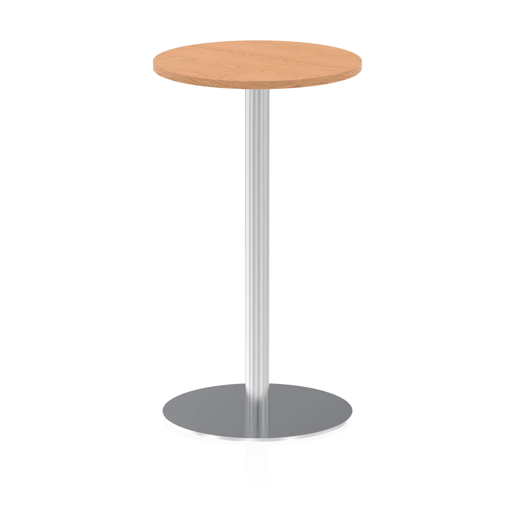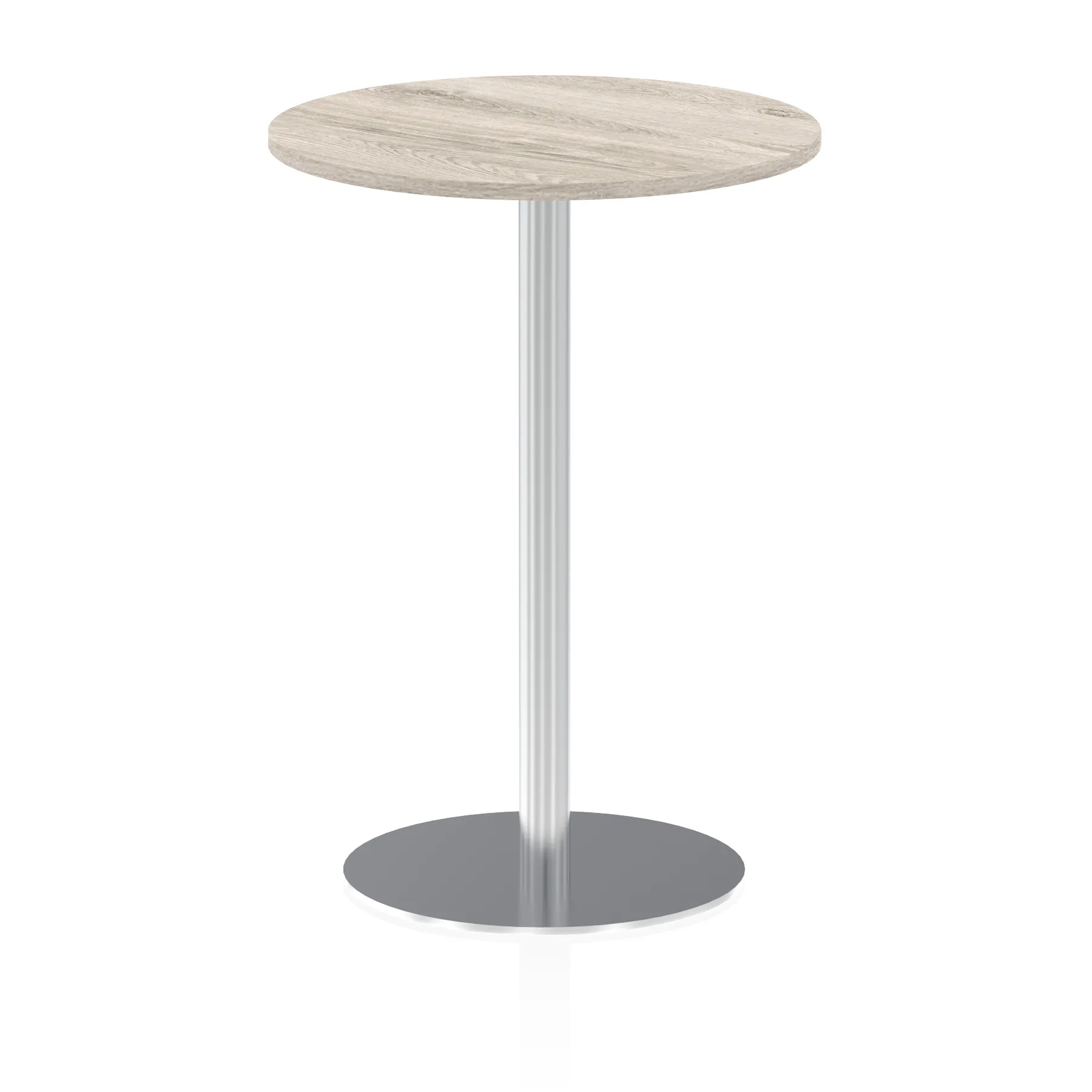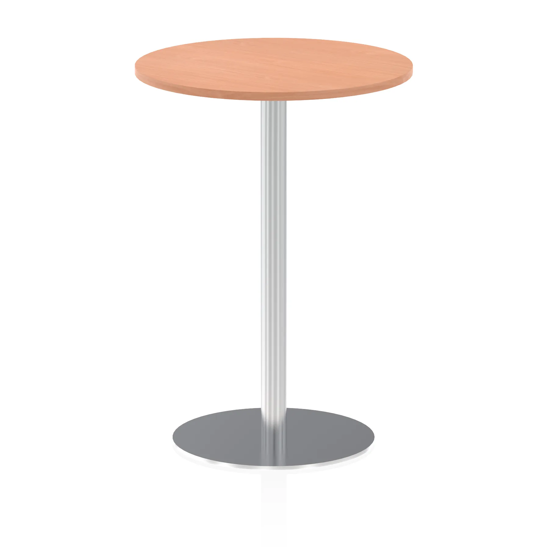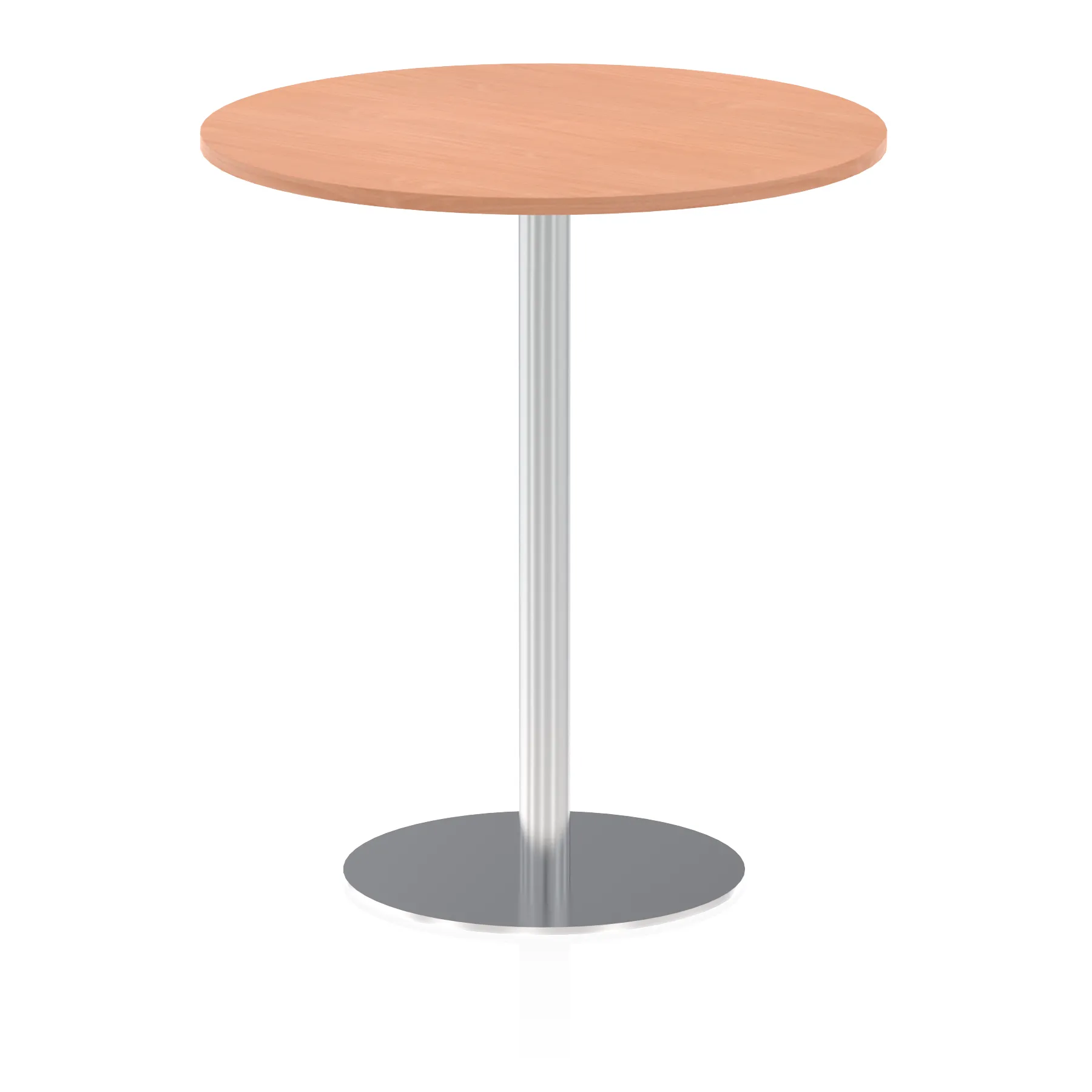 25mm thick desk top profile | Brushed stainless steel effect circular base (580mm diameter) | Brushed stainless steel pillars (76mm diameter) | Weighted base provides stability | Two part bolted frame system