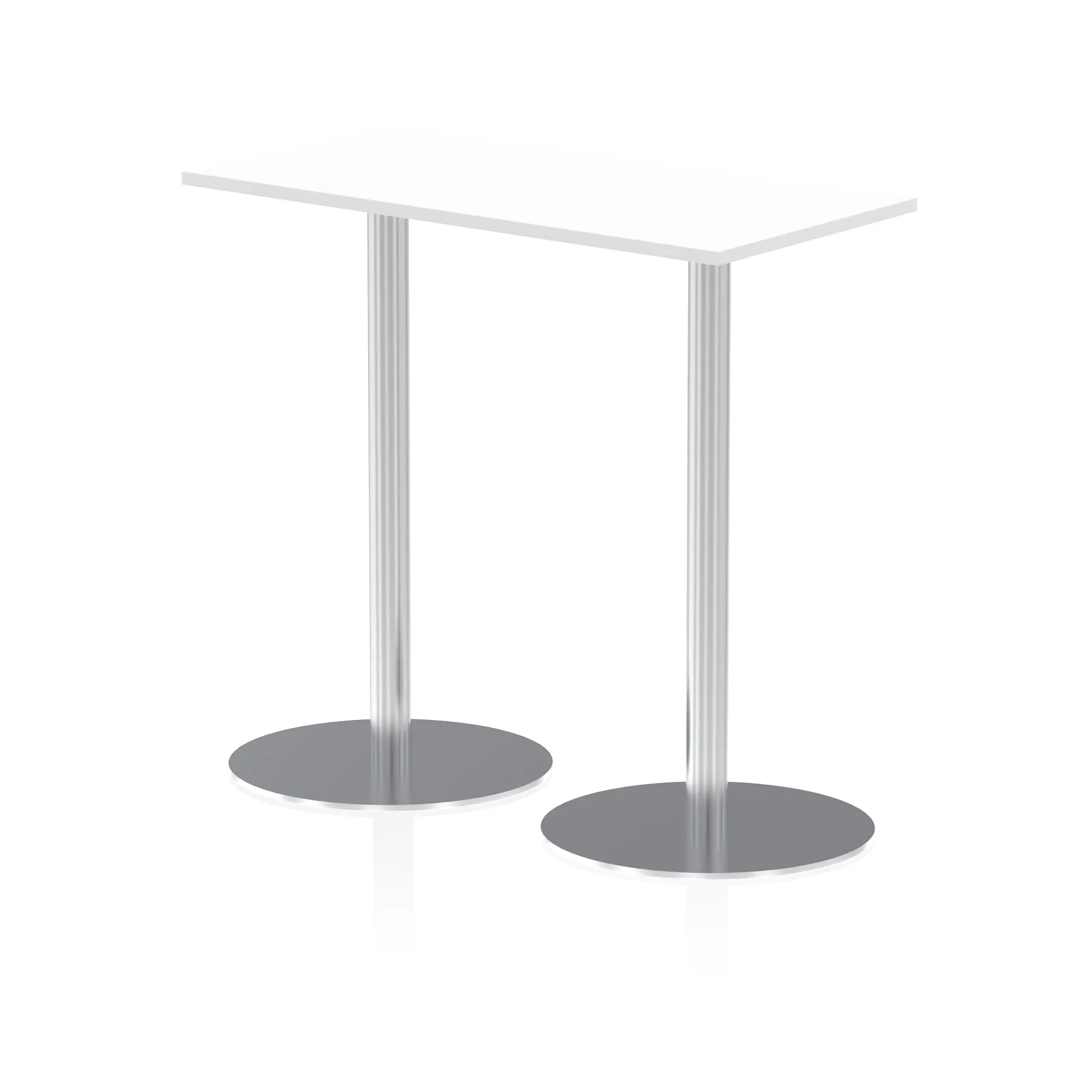 25mm thick desk top profile | Dual, brushed stainless steel effect circular base (580mm diameter) | Brushed stainless steel pillars (76mm diameter) | Weighted base provides stability | Two part bolted frame system