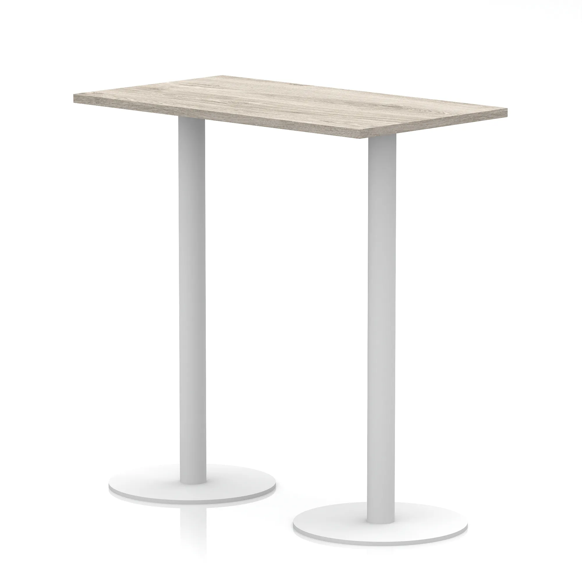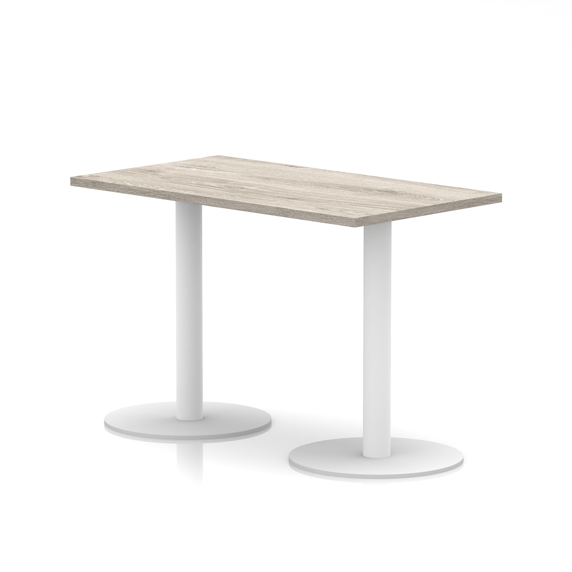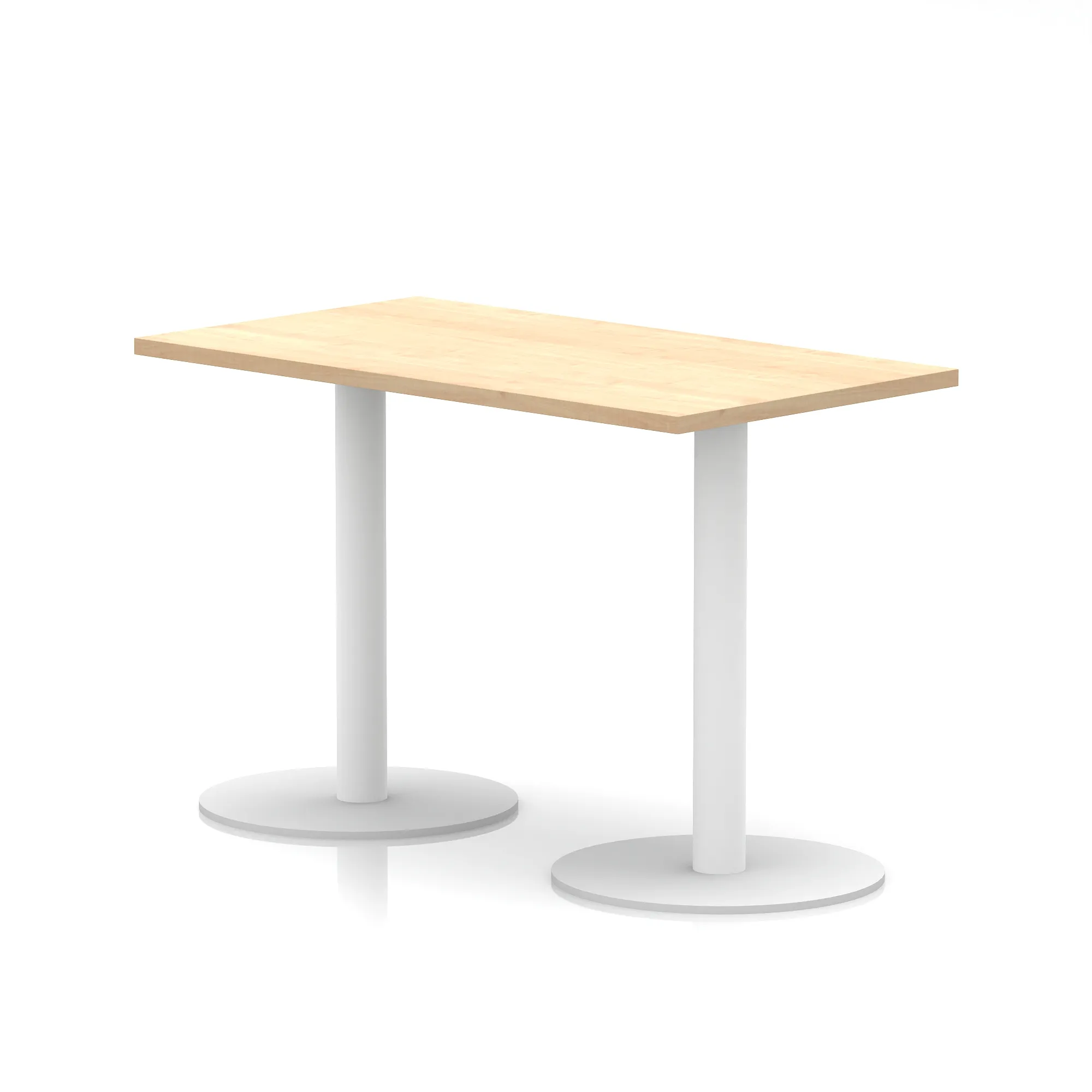25mm thick desk top profile | Dual, brushed stainless steel effect circular base (580mm diameter) | Brushed stainless steel pillars (76mm diameter) | Weighted base provides stability | Two part bolted frame system