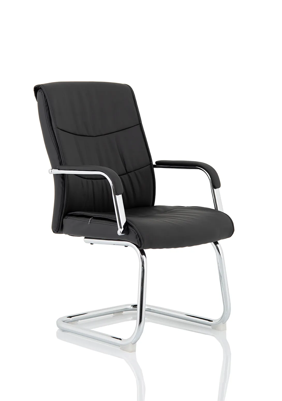 Luxury at a fraction of the usual cost. This high back Carter chair in faux leather has stitch detailing, deep foams and a padded armrest on a chrome frame. A clear case of Get Carter.