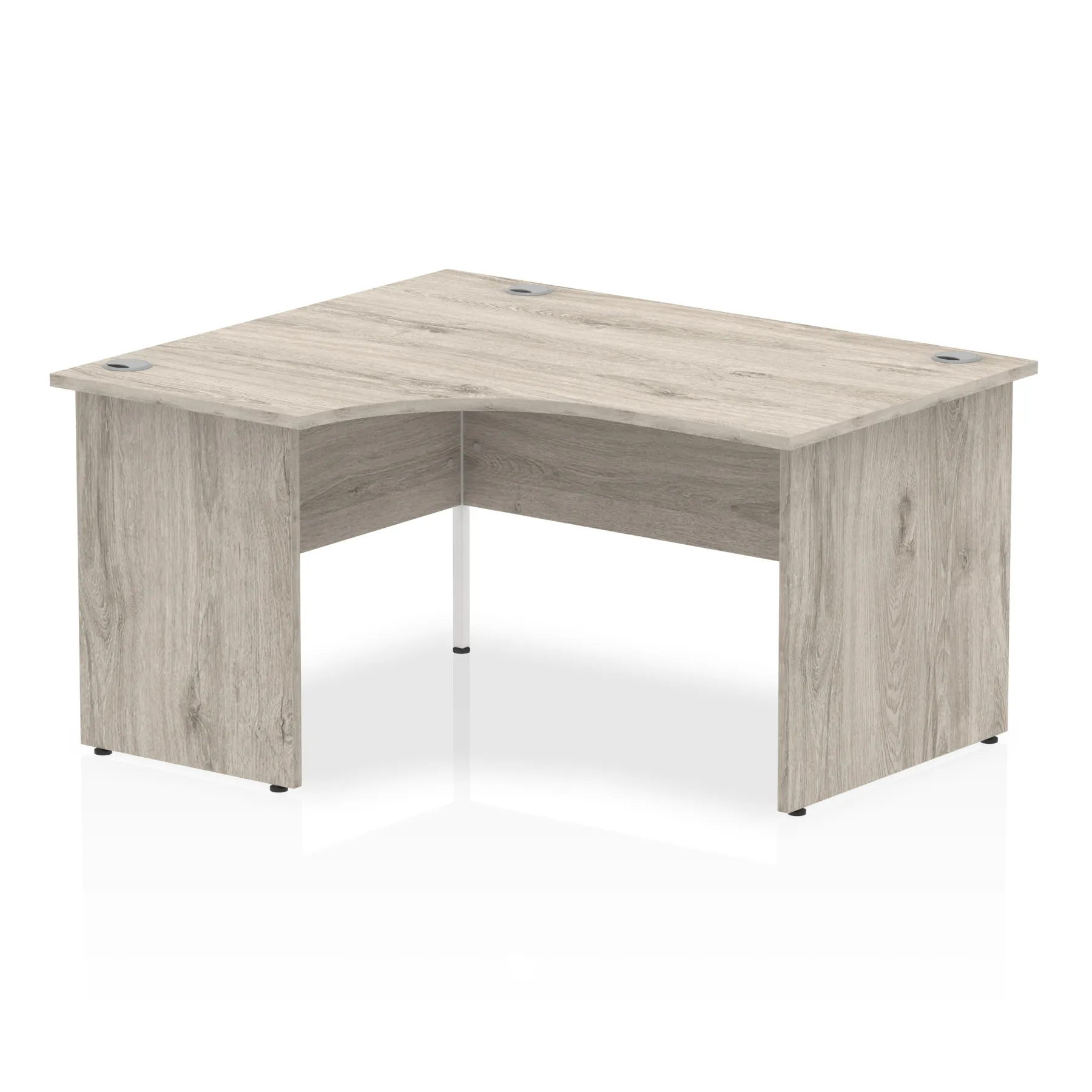 Impulse contract 1400 wide crescent desk | 25mm tops | Heat resistant beech melamine finish | 18mm modesty panel | 2mm protective abs edging | Matching wood panel end legs | 3 cable ports | Height adjustable feet | Steel to steel fixings | 3 modesty panel slots | 600 deep | Deep set modesty panel (5″) allows for compatibility of most screen clamp fittings | Weight Capacity 135Kg