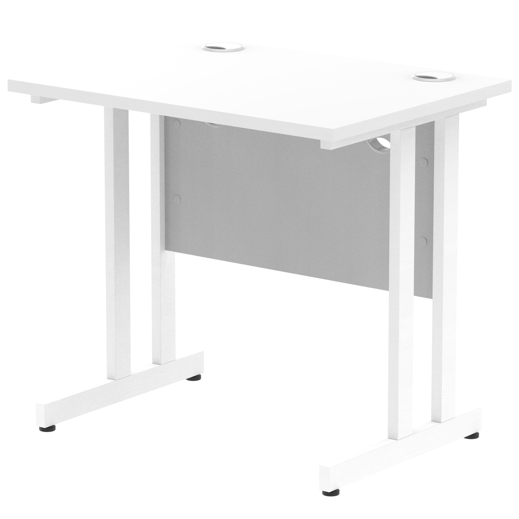 Impulse contract desk | 25mm tops | Heat resistant melamine finish | 18mm modesty panels | 2mm protective abs edging | Silver coated double strut legs | 2 cable ports | Height adjustable feet | Steel to steel fixings | 2 modesty panels slots| Deep set modesty panel (5″) allows for compatibility of most screen clamp fittings | Weight Capacity 135Kg