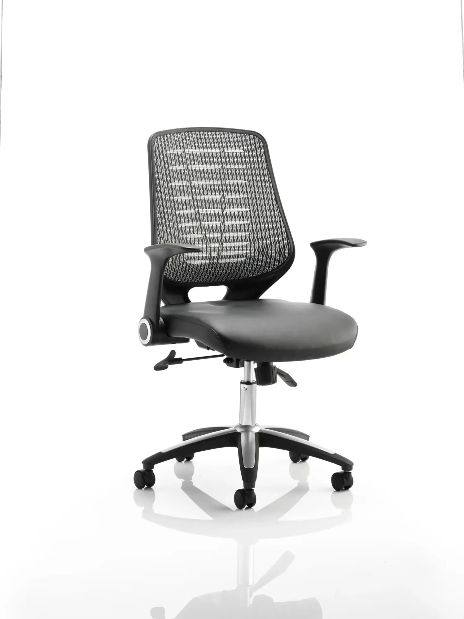 Chosen time and time again, the Relay is the ever popular mesh operator option. Modern styling with silver and chrome accented base & gas lift and easy fold armrests are complimented by a cool vented backrest design that is finished in a choice of either black or silver breathable mesh that allows you to keep your cool. The Relay makes for a versatile chair for all office environments.