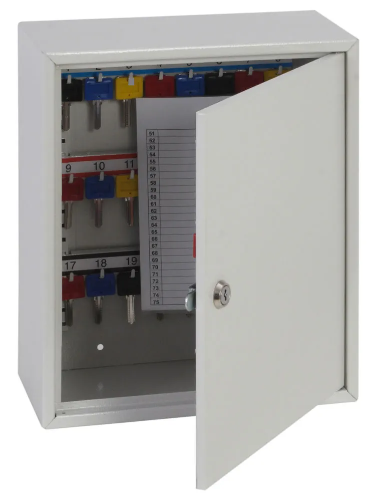 NO. OF KEY HOOKS – 24 | SPECIAL FEATURES – Comes complete with adjustable hook bars, key tabs, key rings, number labels to suit the hook bars and removable control indexes | FIXING – The cabinet has pre-drilled fixing holes for wall mounting and bolts supplied | FINISH – Finished in a high quality durable powder coated finish