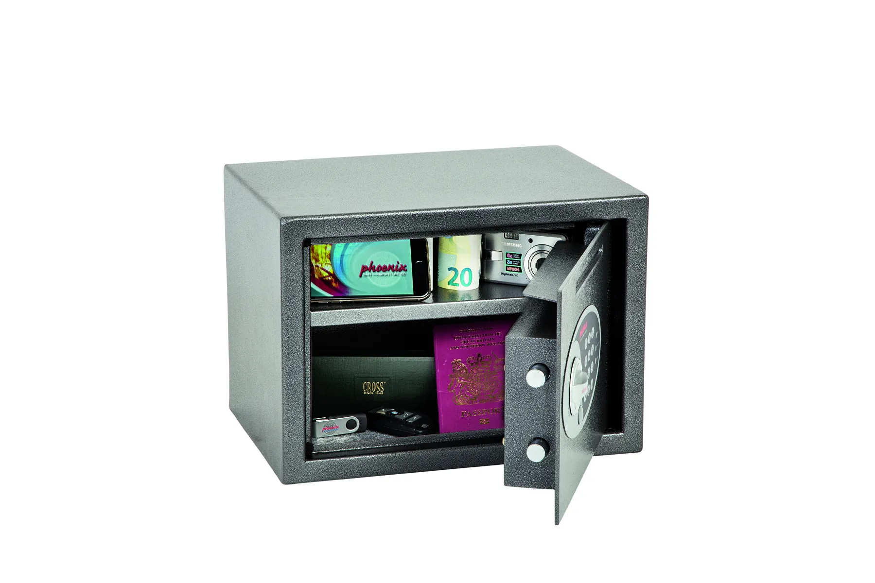 THE PHOENIX VELA DEPOSIT is designed for use at home or in the office for storage of valuables, cash and important documents. With its high quality user friendly electronic lock it is ideal for multiple applications.